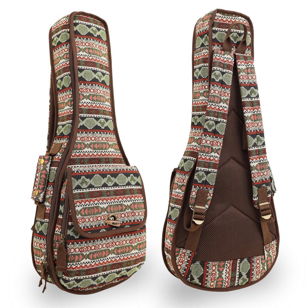 26" Tenor Bohemia Pattern Tribal Fabric Ukulele Gig Bag Backpack (BLUE MULTI COLORS)