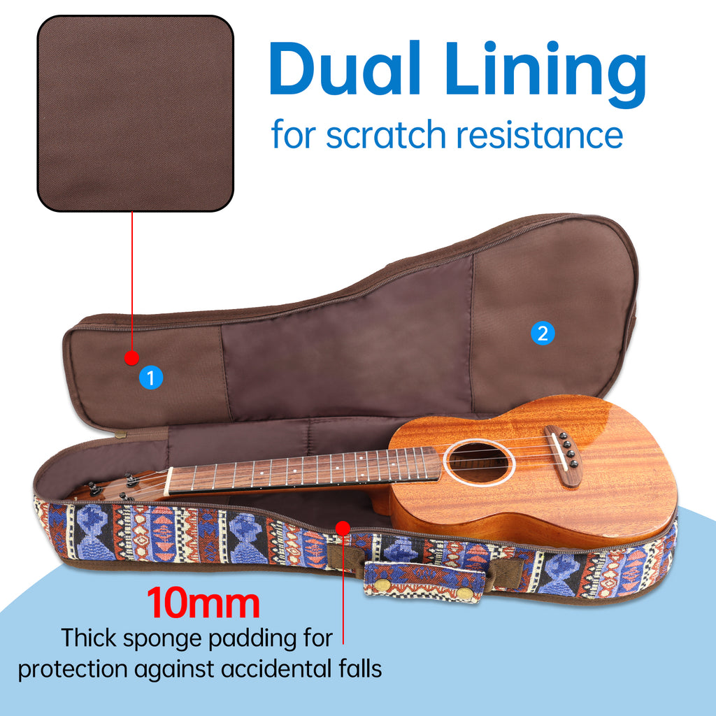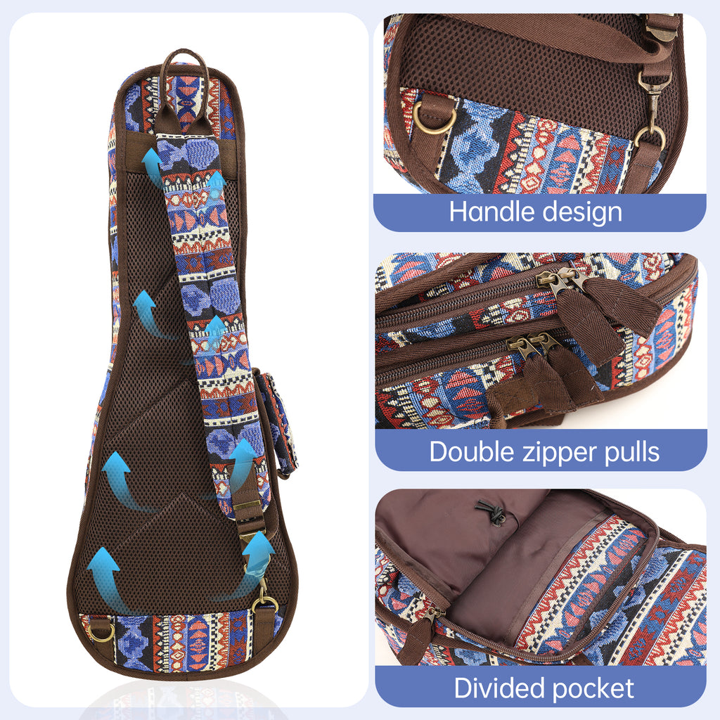 23" Concert Bohemia Pattern Tribal Fabric Ukulele Gig Bag (BLUE MULTI COLORS)