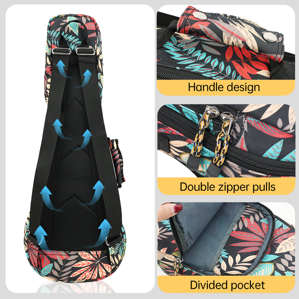 23" Concert Summer Tropical Leaves Print Ukulele Sling Gig Bag Backpack (RED MULTI COLORS)