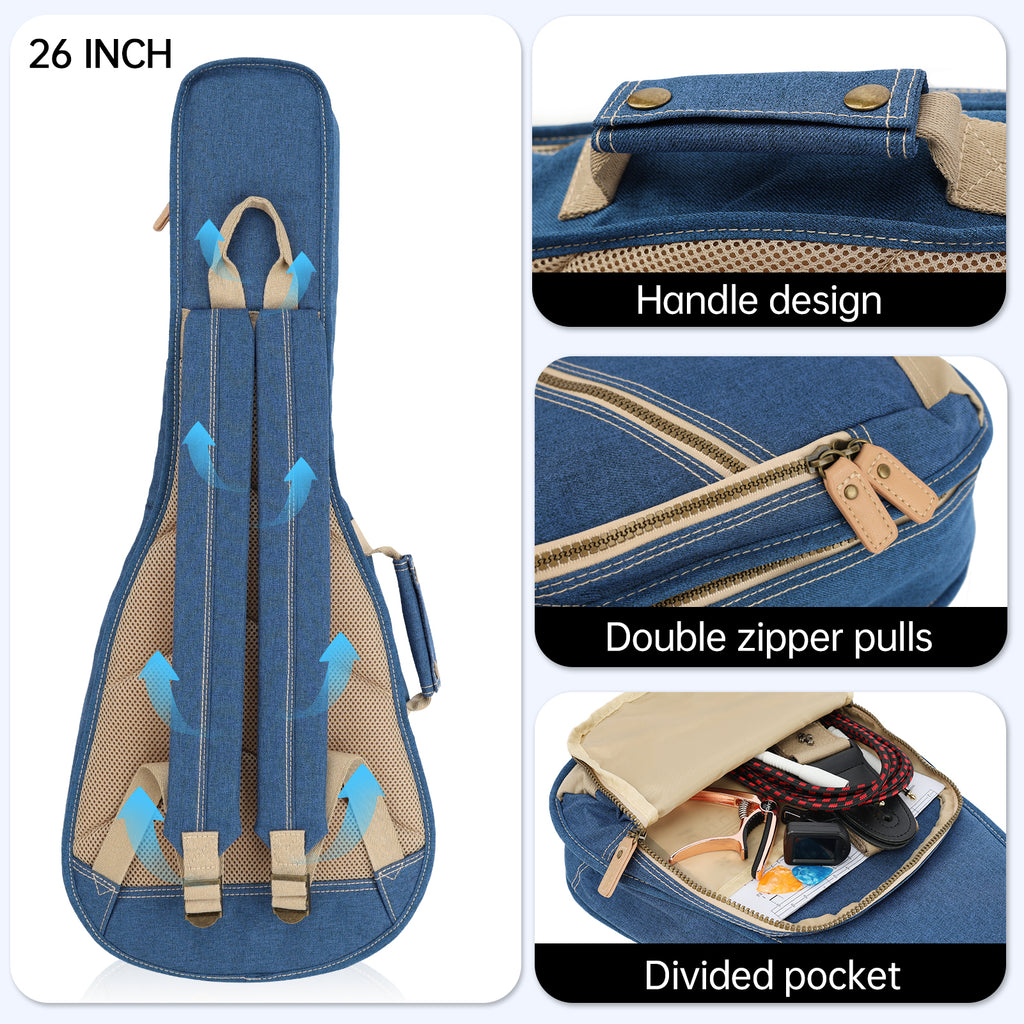 26" Tenor Custom Fit Stylish Polyester Ukulele Gig Bag Backpack (BLUE)