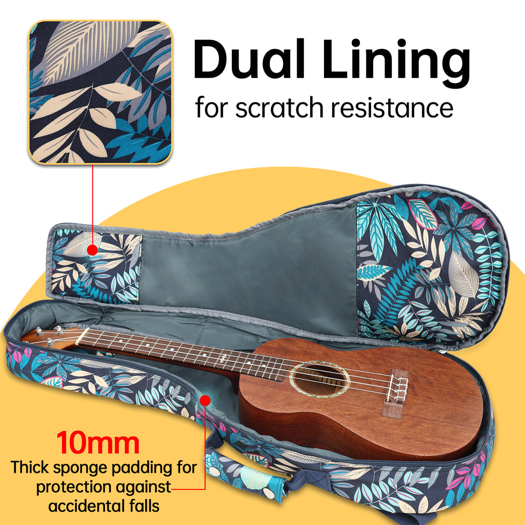 26" Tenor Summer Tropical Leaves Print Ukulele Sling Gig Bag Sling Bag (BLUE MULTI COLORS)
